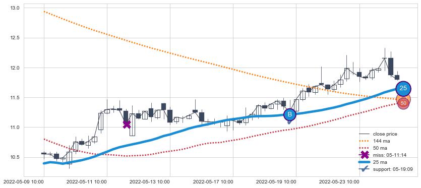 上涨趋势05-09 10:00-05-24 11:00,均线25确认关键支撑1处