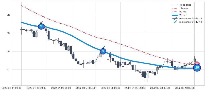 下跌趋势01-14 09:00-02-10 09:00,均线25确认关键阻力2处