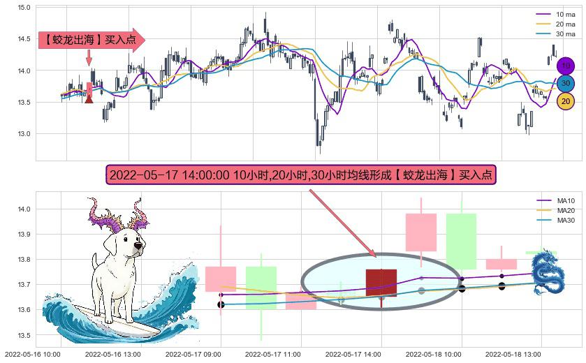 ⚀ 2022-05-17 14:00:00小时显现 10小时-20小时-30小时均线 【蛟龙出海】买入点 看多信号,后市看涨,买入