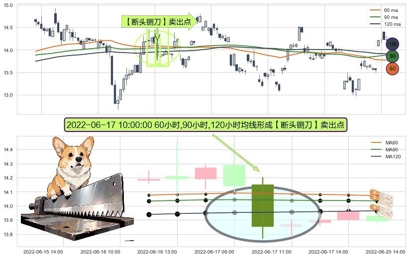 ⚀ 2022-06-17 10:00:00小时显现 60小时-90小时-120小时均线 【断头铡刀】卖出点 看空信号,后市看跌,卖出