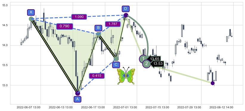 ➣ 已完成【蝴蝶】形态起点X: 06-06:11, 终点D: 06-27:14, 共60交易小时