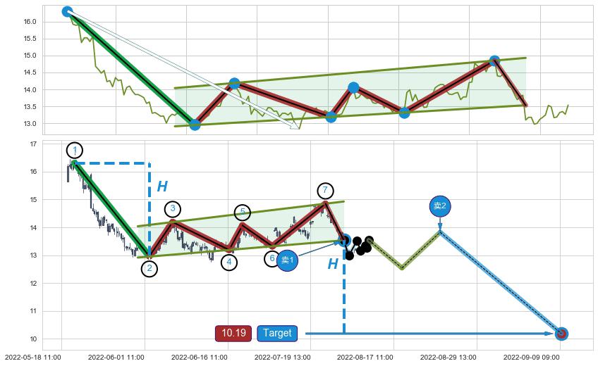 ➣ 最小中继整理跌幅→𝐇: 3.350 (𝐇旗杆的长度:旗杆起点→顶点)