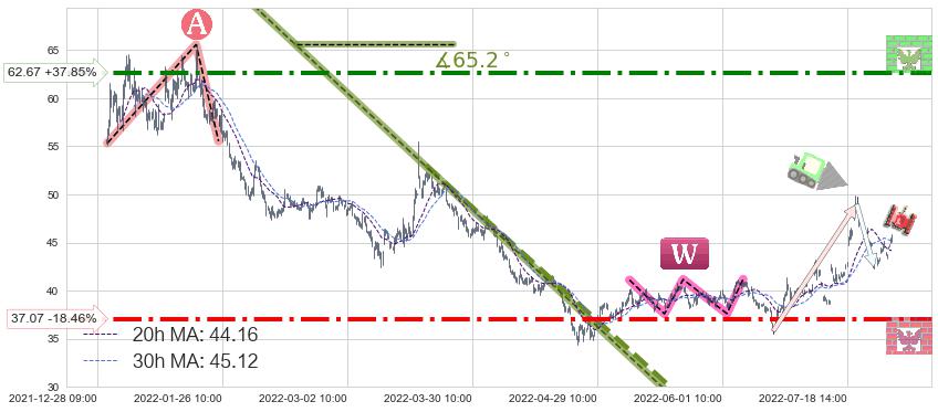 ♞ 20小时均线:44.16,30小时均线:45.12→ 快线<慢线