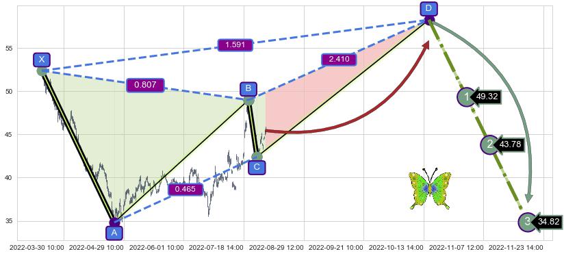 ➣ 未完成【蝴蝶】形态起点X: 03-18:14, 已到达C点: 08-02:14, 预测最终D点: 10-17:11, 共647交易小时