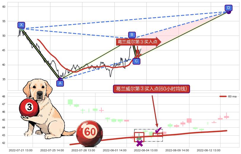➣ D点拟合预测价格58.28,距离最后交易收盘价格45.46相差 +28.20%