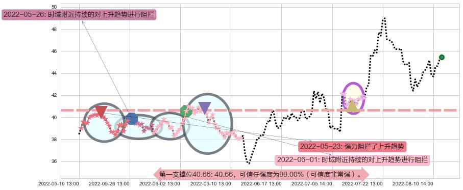 2022-05-23: 第一支撑位40.66强力阻拦了上升趋势,成功阻止了价格的继续上涨。