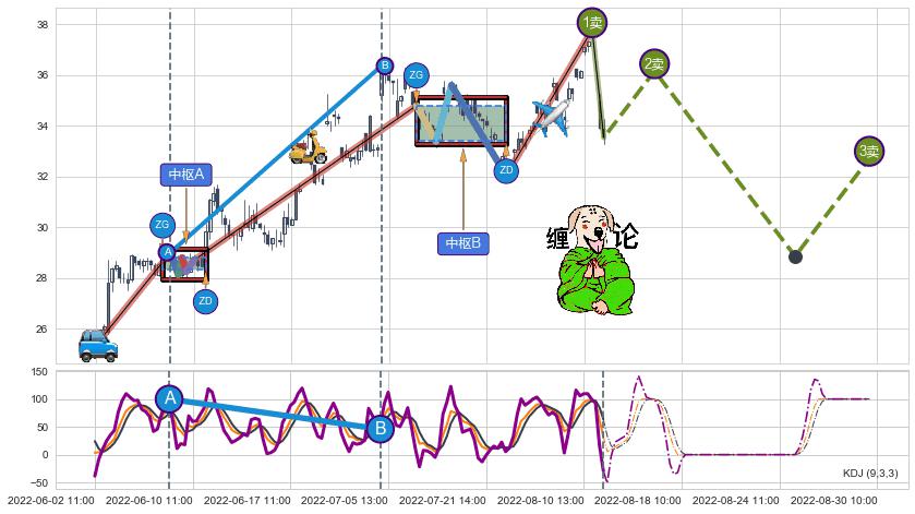 ➣ 【已完成】缠论 起点:06-02:11,完成第1中枢A,完成第2中枢B,终点:08-11:13,缠论共128交易小时