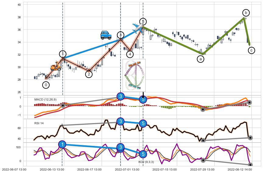 ➢ 1,3,5驱动浪MACD, RSI, KDJ走势都出现【常规背离】反转信号增强