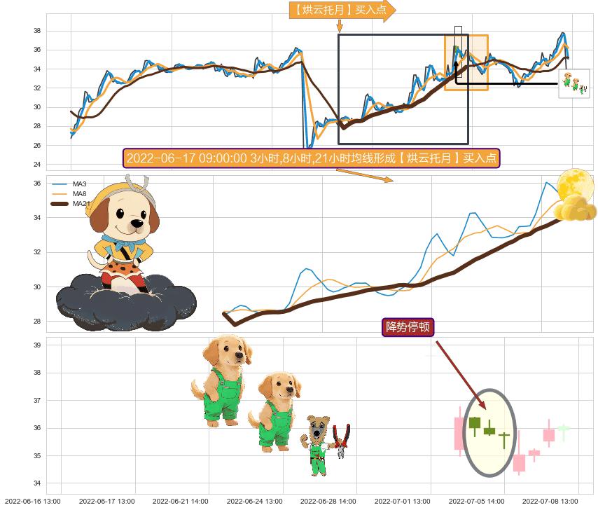 🍖 长线趋势跟踪组合短线均值回复[强支撑信号]2022-06-02 11:00-2022-08-12 13:00上升趋势依然成立(上涨趋势跟踪依然可行),短线价格略微下行回调(均值回复猜想),即将接近趋势提供的未破位的支撑价格:33.75。