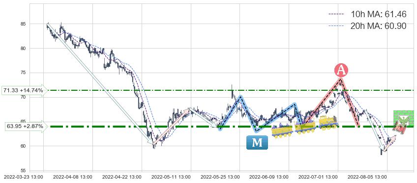 ♘ 阻力价格位71.33,可信任强度53.03%,距离最后交易2022-08-12 14:00形成的收盘价格62.17相差 +14.74%