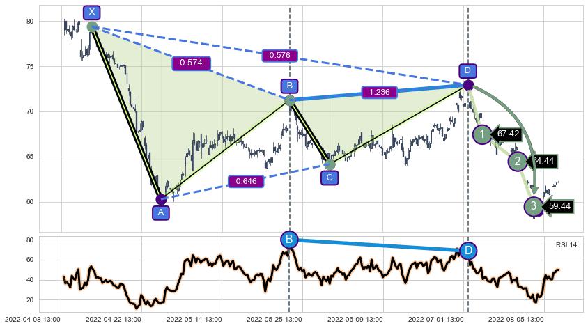 ➢ 谐波价格D点比B点高 ⤴,【RSI】指标D点比B点低 ⤵️