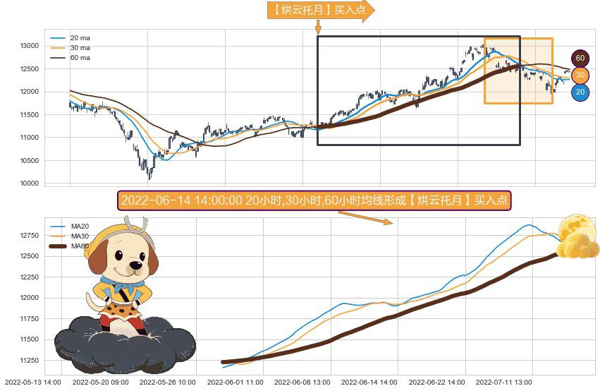 ⚀ 2022-05-27 15:00:00小时-2022-07-20 13:00:00小时显现 20小时-30小时-60小时均线 【烘云托月】买入点 看多信号,后市看涨,买入