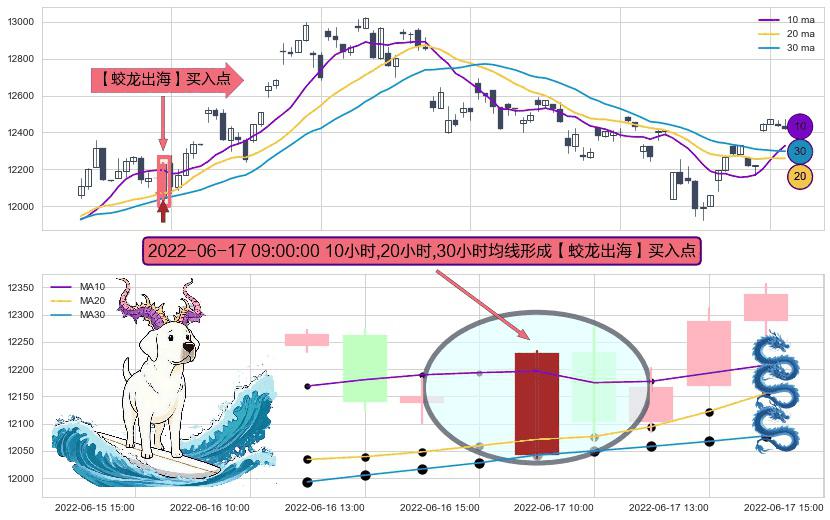 ⚀ 2022-06-17 09:00:00小时显现 10小时-20小时-30小时均线 【蛟龙出海】买入点 看多信号,后市看涨,买入