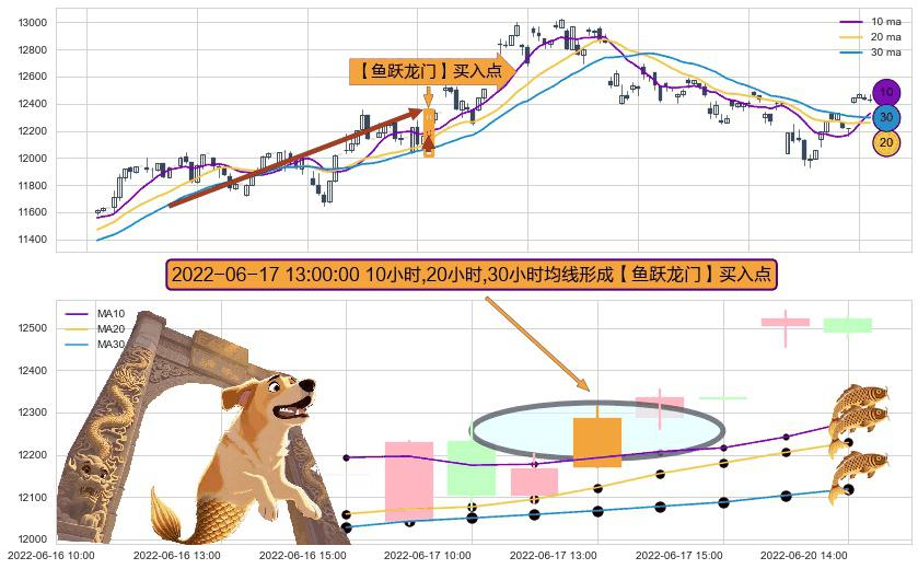 ⚀ 2022-06-17 13:00:00小时显现 10小时-20小时-30小时均线 【鱼跃龙门】买入点 看多信号,后市看涨,买入