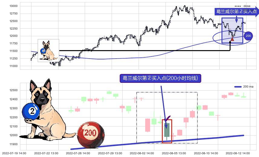 ⚀ 2022-08-03 14:00:00-小时显现 葛兰威尔均线 200小时均线 第②买入点 上升趋势的中继信号,后市看涨,买进信号