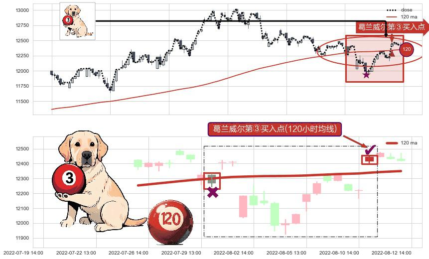 ⚀ 2022-08-11 13:00:00-小时显现 葛兰威尔均线 120小时均线 第③买入点 上升趋势的中继信号,后市看涨,买进信号