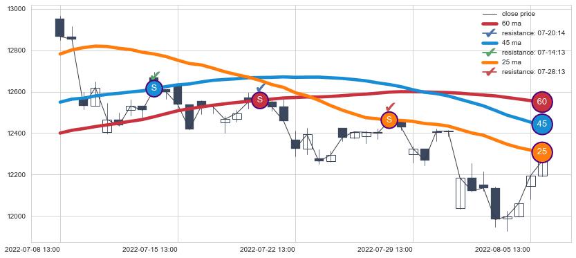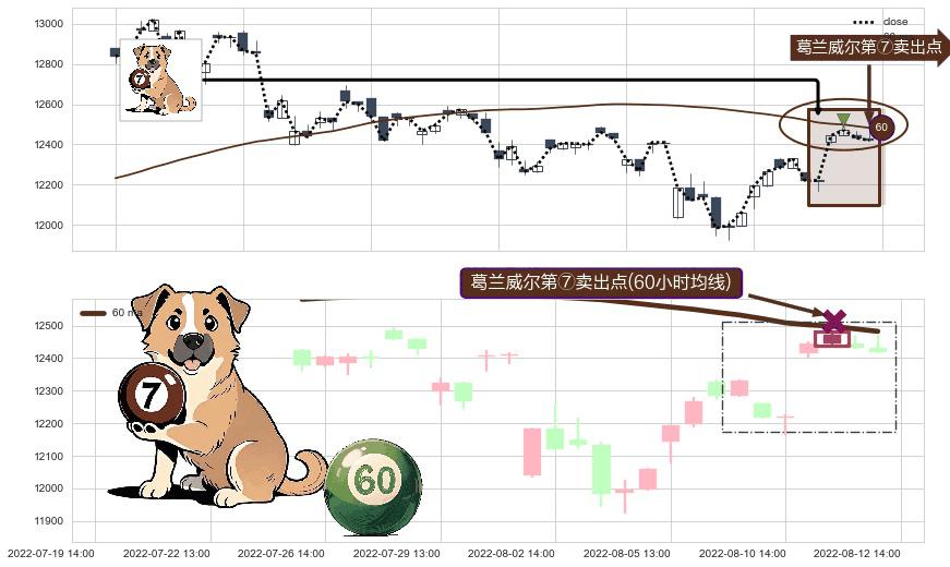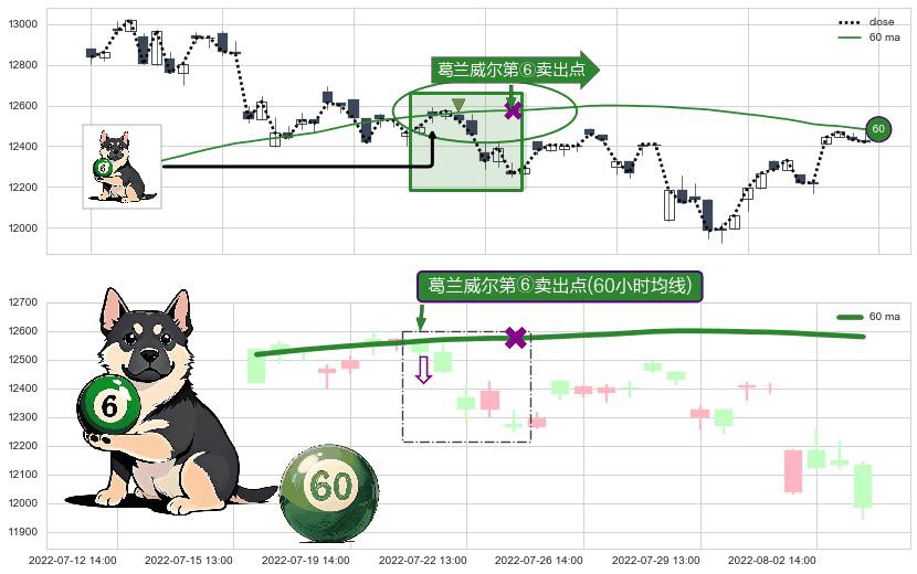 ⚀ 2022-07-21 13:00:00-小时显现 葛兰威尔均线 60小时均线 第⑥卖出点 走势反转见顶信号,后市看跌,卖出信号