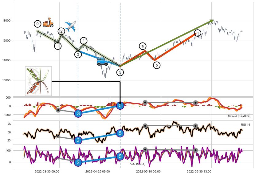 ➢ a,c调整浪MACD, RSI, KDJ走势都【未出现】背离,abc走势延续, 5浪反转概率增强