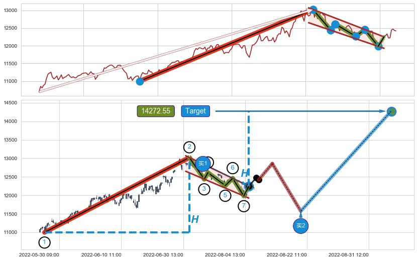➣ 最小中继整理涨幅→𝐇: 2022.60 (𝐇旗杆的长度:旗杆起点→顶点)