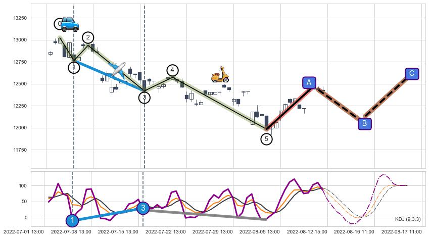 ➢ AI预测: 假定反转启动后, 第❷目标位置(09-08:12, 12361.94)