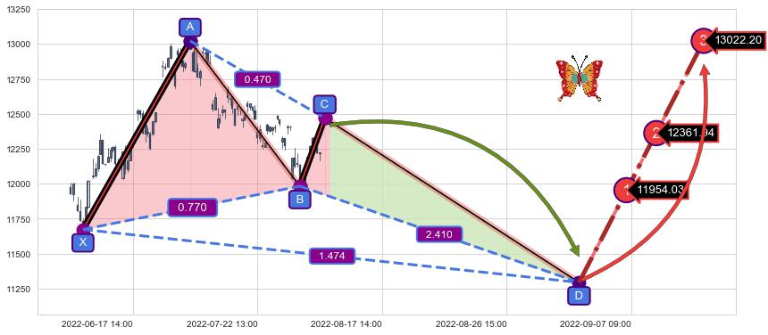 ➣ 未完成【蝴蝶】形态起点X: 06-14:11, 已到达C点: 08-11:14, 预测最终D点: 09-02:09, 共200交易小时