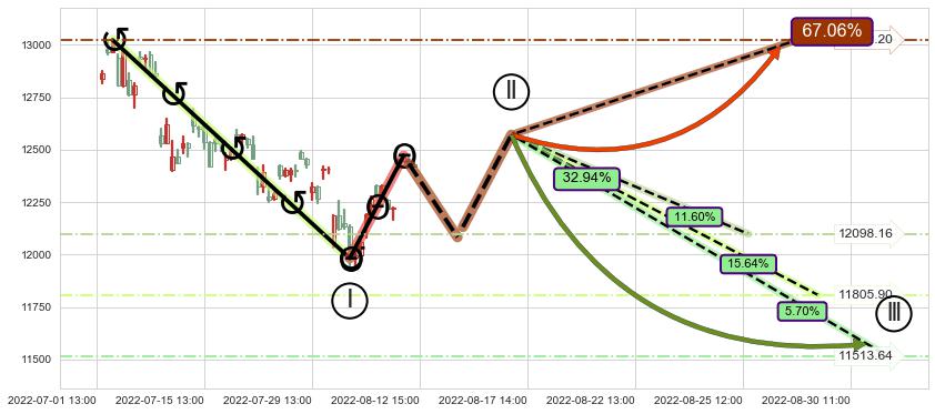 ♘ 阻力价格位12969.67,可信任强度73.12%,距离最后交易2022-08-12 14:00形成的收盘价格12419.80相差 +4.43%