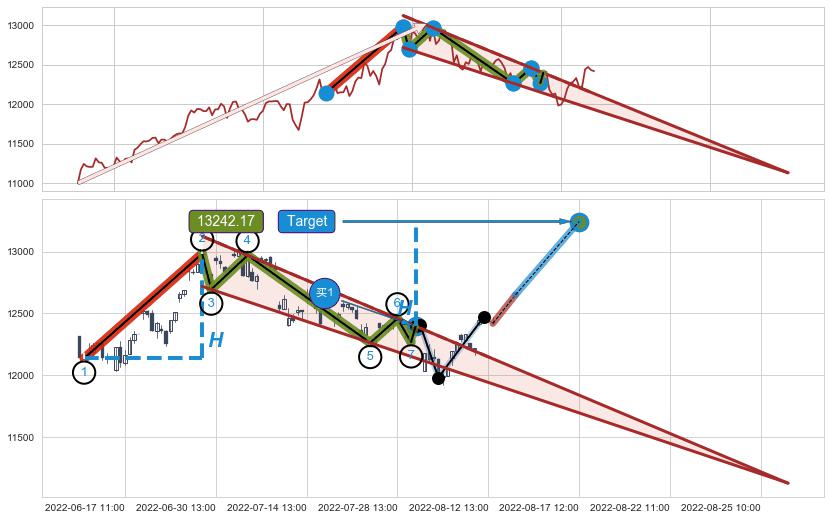 ➣ AI预测: 假定反转启动后, 第❸目标位置(09-13:10, 13022.20)