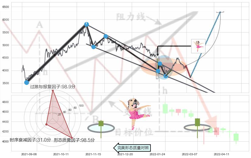 ➢ 🕰 价格走势在2022-04-06至2022-04-18期间形成三空阴线,残存影响值:4.01