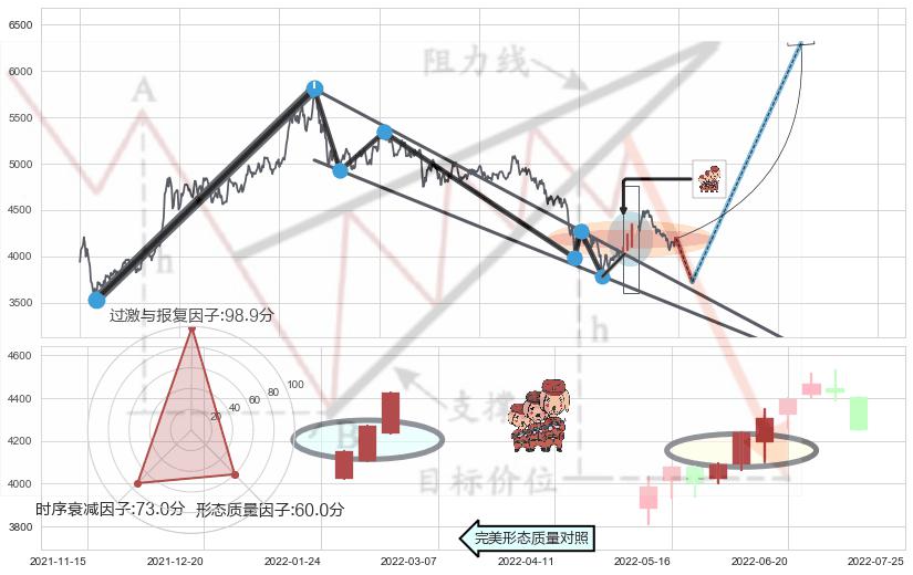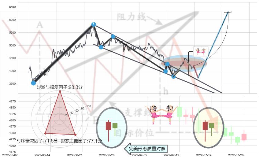 ➢ 🕰 价格走势在2022-07-18至2022-07-19期间形成双针探底,残存影响值:5.89