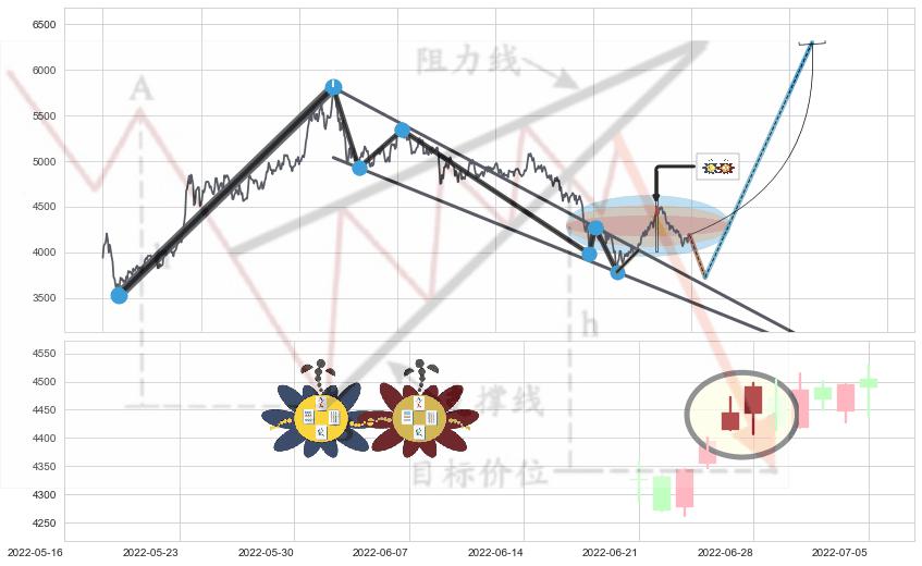 ➢ 低点影线(2022-06-17: 4218.68 )→回踩→第二根k线低点(2022-06-15: 4228.29 )