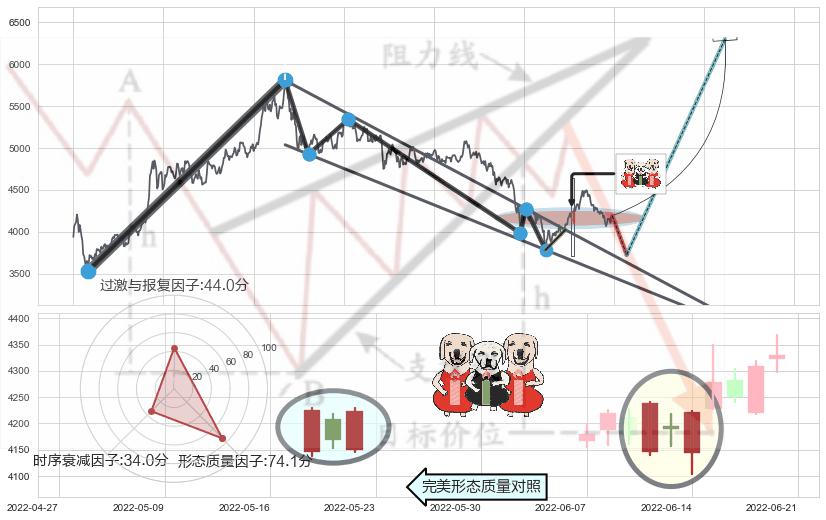➢ 🕰 价格走势在2022-06-10至2022-06-14期间形成两红夹一黑,残存影响值:2.97