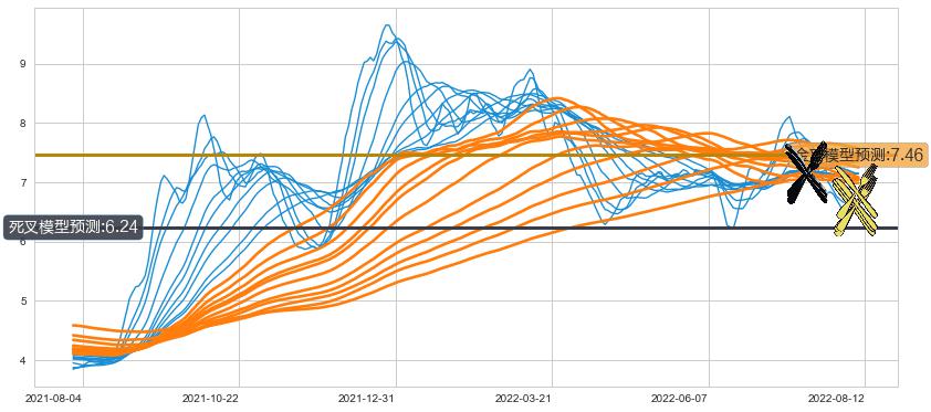 ➣ 60小时均线于(2022-07-20: 7.17)形成【死叉】基于【死叉历史模型】预测死叉后最低波谷价格: 6.16, 死叉后最低价格6.31,尚未达到预测最低波谷价格, 预期继续下跌