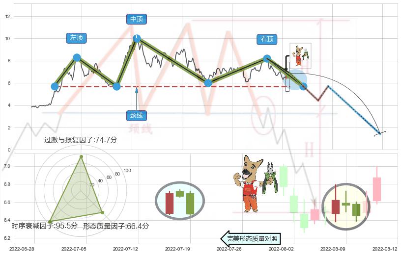 ♘ 支撑价格位6.26,可信任强度87.84%,距离最后交易2022-08-12形成的收盘价格6.87相差 -8.91%