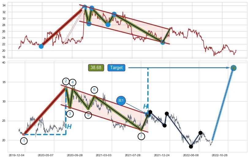 ➣ 最小中继整理涨幅→𝐇: 12.09 (𝐇旗杆的长度:旗杆起点→顶点)