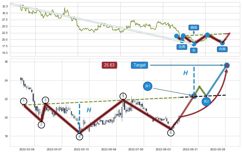 ➣ 最小反转涨幅→𝐇: 3.301 (头部与颈线垂直距离)