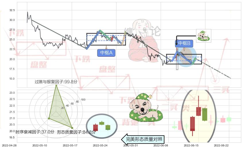 ➢ 下跌孕十字星 🔜 缠论中枢点破位中枢B支撑下拉 综合量化分数:46.46 【中性】