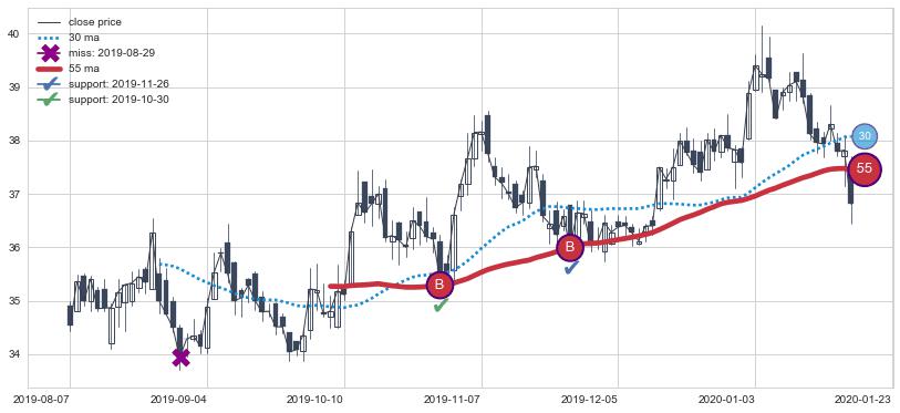 📝 多条均线形成死叉后走势最低价格达到: 33.06