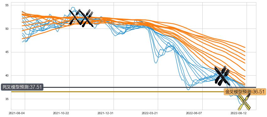 ➢ 55小时均线于(2022-07-08: 39.49)形成【死叉】基于【死叉历史模型】预测死叉后最低波谷价格: 35.07, 死叉后最低价格33.06,已经下跌超出预测最低波谷价格, 预期反弹