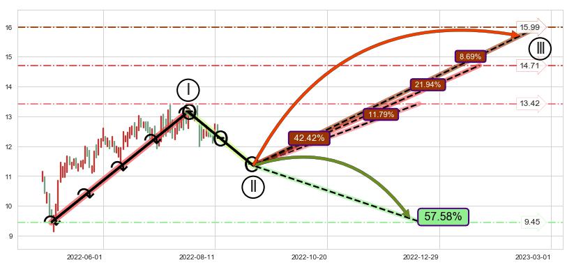 ➣ AI预测: 假定反转启动后, 第❶目标位置(2022-10-18, 12.14)