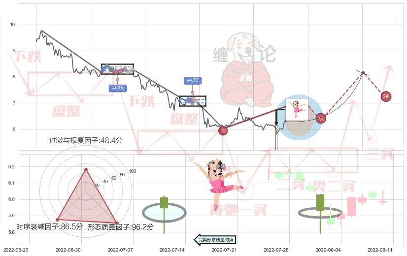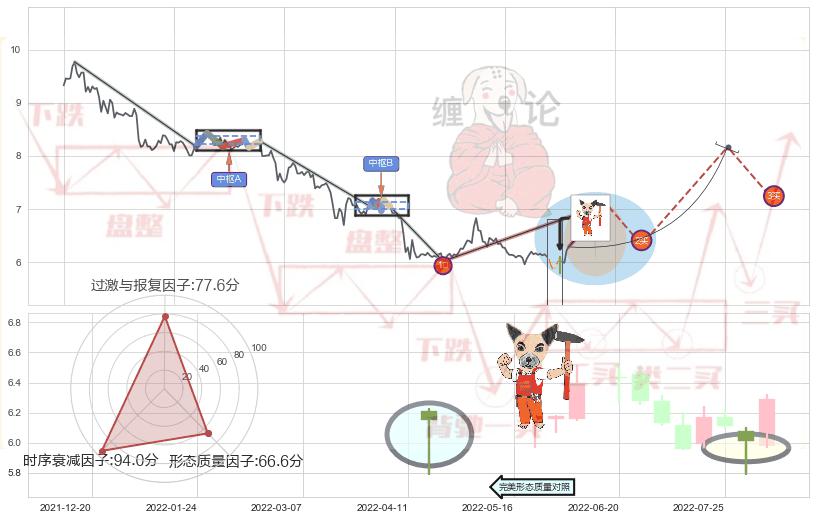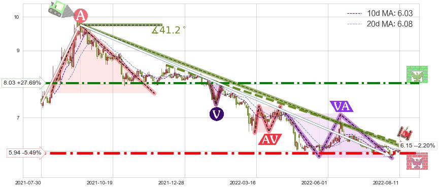 🦴 长线均值回复组合短线趋势跟踪[强阻力信号]2021-09-07-2022-08-11下跌趋势依然成立(下跌趋势跟踪依然存在),短线价格略微上行反弹(均值回复猜想),即将接近下跌趋势提供的未破位阻力价格:6.15。