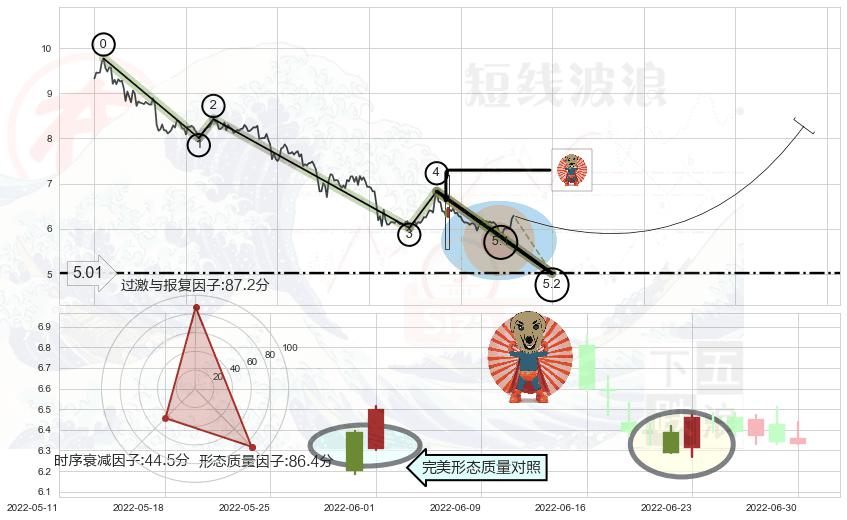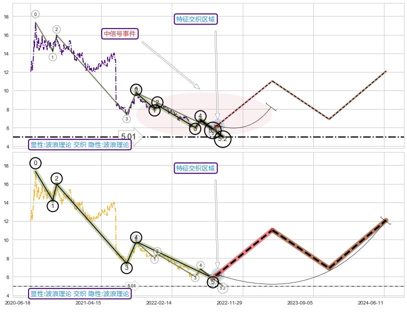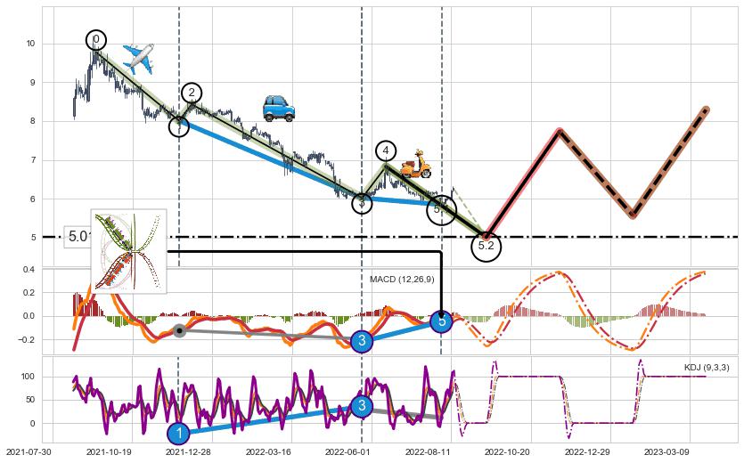 ➣ 5.1: 预测当前第5浪位置(2022-08-03, 5.85),仍然有下跌空间