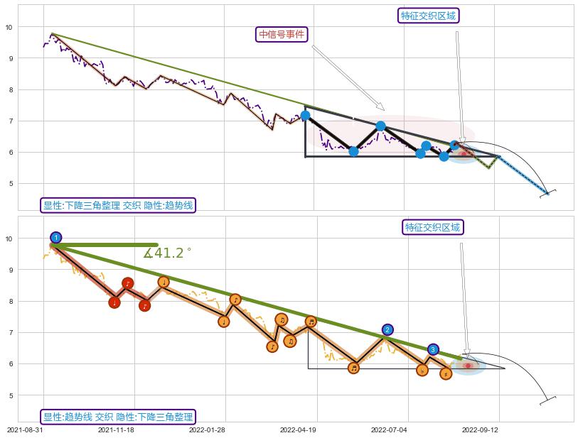 ➢ 下降三角整理属【中级别信号事件】趋势线属【长级别信号事件】中长周期组合信号事件,中长事件长度比38.12%