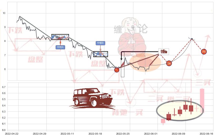 ➣ 【中枢B】:2022-03-31-2022-04-15,中枢由7笔构成,共10交易日, ZG=7.15, ZD=7.05