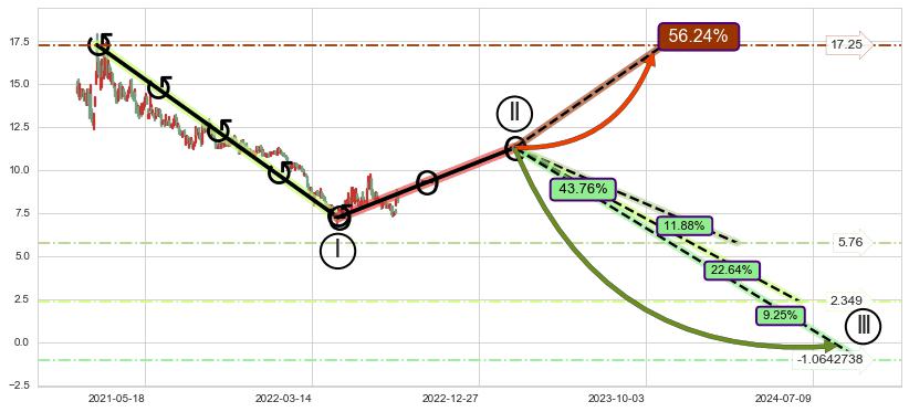 ➣ 大趋势循环浪继续向下概率43.76%
