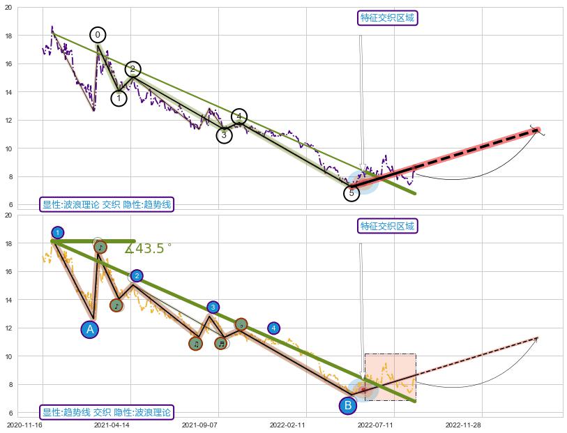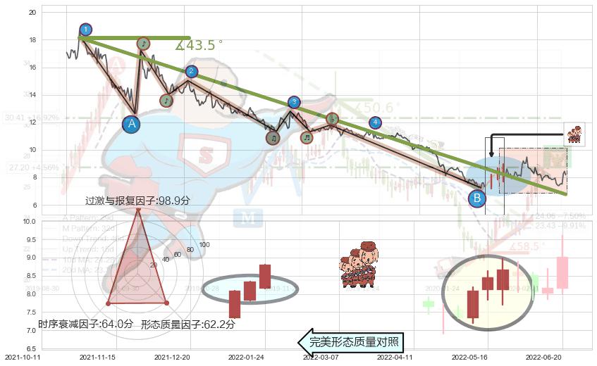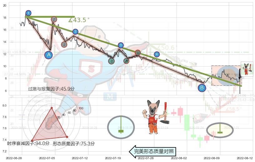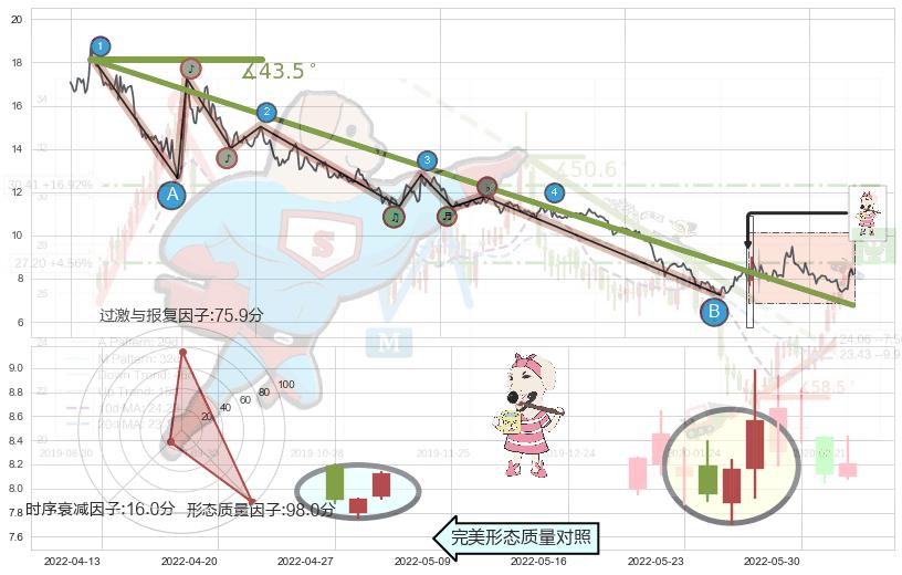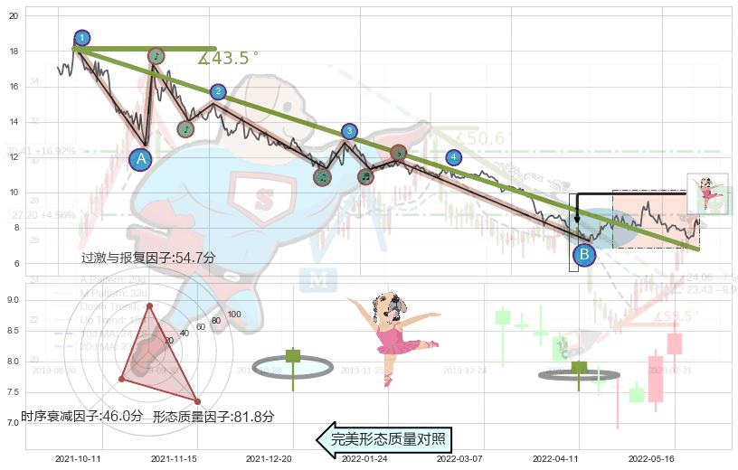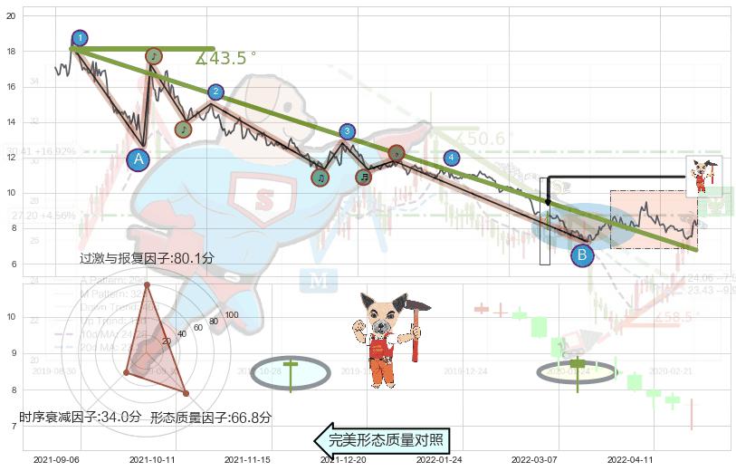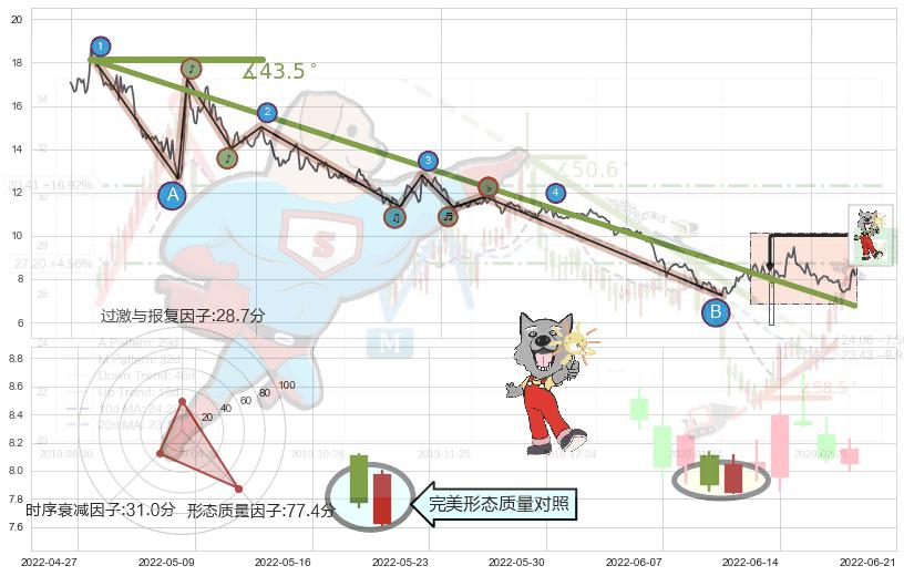 ➢ 2020-12-01-2022-05-26下跌趋势存在反转上涨[机会],其原下跌趋势的阻力位(6.76)已被突破[强支撑信号],原下跌趋势角度: 43.5˚