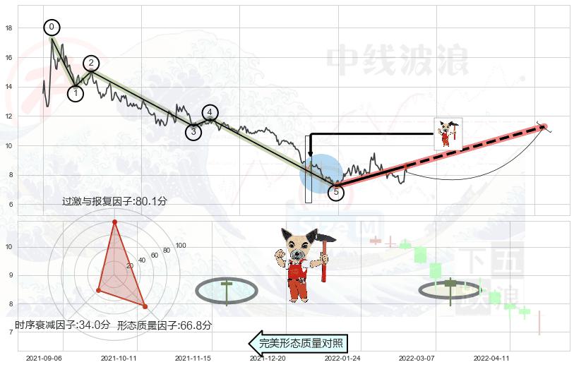 ➢ 曙光初现形态 🔜 波浪理论下跌浪:浪5反弹拐点 综合量化分数:54.14 【偏多】