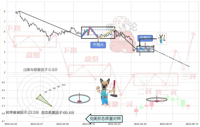 ➢ 下跌螺旋桨 🔜 缠论中枢点破位中枢B支撑下拉 综合量化分数:47.12 【中性】