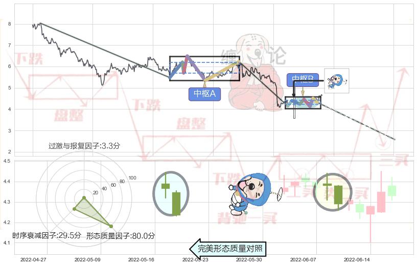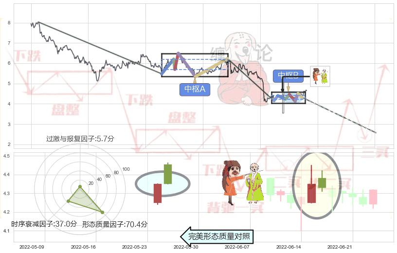 ➣ 下跌螺旋桨 + 缠论中枢点破位中枢B支撑下拉信号叠加后【信号初始稳固度】中等,【看空】信号叠加【可信度影响中等】