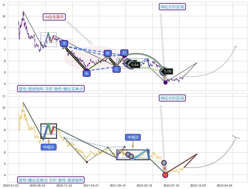 ➢ 【中枢A】:2021-07-28-2022-01-17,中枢由6笔构成,共116交易日, ZG=6.20, ZD=5.70