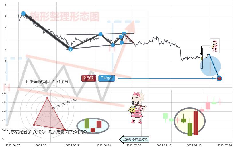 ➢ 🕰 价格走势在2022-07-04至2022-07-11期间形成吊颈线(上吊线),残存影响值:-3.89